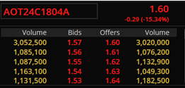 ที่เป็นเช่นนี้ก็เพราะ DW ตัวนี้มี Sensitivity มากกว่า 1 ไงครับ ซึ่งนลท. จะสามารถตั้งขายได้ที่ราคาดังกล่าวโดยไม่ได้ผิดกฏแต่อย่างใด ลองคิดดูสิครับว่า ถ้า Bid ของ AOT เปลี่ยนจาก 68.50 เป็น 68.75 บาทราคา Bid ของ AOT24C1804A ก็จะเปลี่ยนเป็น 1.60 บาททันที เพราะฉะนั้นการที่นลท. ตั้งขายที่ 1.58 หรือ 1.59 บาท Order ที่ตั้งไว้ก็อาจจะถูกซื้อไปจาก นลท. ท่านอื่นที่อยากจะได้ของที่ถูกกว่า 1.60 บาทแต่ถ้าจะให้ไปตั้งรอที่ 1.57 บาทก็ไม่ได้ของซักทีไงครับ และถ้าซื้อไปที่ 1.58 บาทแล้วก็ยังสามารถทำกำไรได้ถ้าหุ้นแม่ขยับขึ้นช่องนึงไงครับ “คนอยากขายก็ขายได้เร็วกว่า คนอยากซื้อก็ซื้อได้ถูกกว่า” เห็นไหมหละ Win-Win ทั้ง 2 ฝ่าย