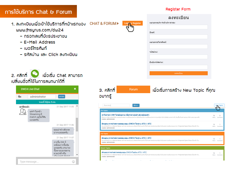 Special Function: วิธีการใช้บริการ CHAT & FORUM บน Website DW24